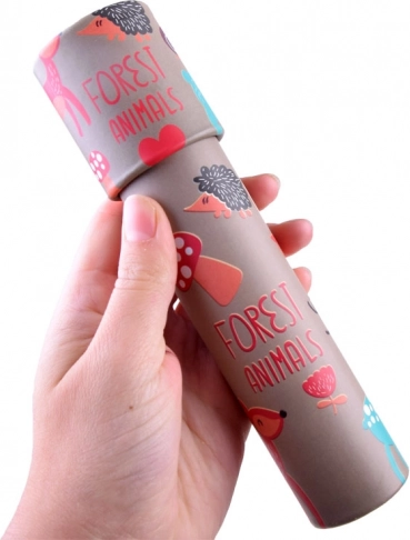 Lekka i wytrzymała konstrukcja z kartonu z radosnymi motywami leśnych zwierzątek gwarantuje wygodne trzymanie i bezpieczną zabawę. Kalejdoskop świetnie wspiera rozwój kreatywności, percepcji sensorycznej oraz cierpliwości.