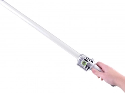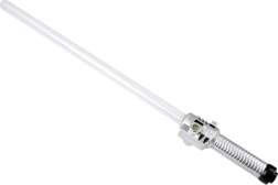 Ten świetlny miecz z realistyczną srebrną rękojeścią i czerwonym przyciskiem zapewnia dzieciom autentyczne wrażenia z galaktycznych pojedynków. Po aktywacji włącza się zielone światło LED oraz efekty dźwiękowe, które potęgują napięcie i frajdę podczas zabawy.