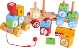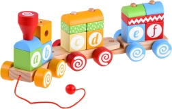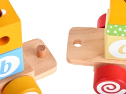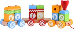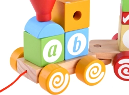 Odłączane części pociągu umożliwiają dziecku naukę rozpoznawania kształtów, ich układania i budowania własnych wagoników. Na każdym klocku znajduje się literka, co pomaga utrwalić wygląd pierwszych liter w pamięci.
