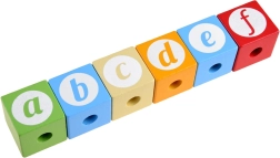 Klocki z literkami wspierają rozpoznawanie alfabetu i pamięć wzrokową.