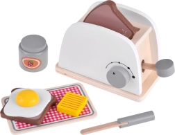 Poznaj pięknie wykonany drewniany zestaw, który przenosi zwykłą kuchenną zabawę na wyższy poziom. Ten drewniany toster z akcesoriami to idealny prezent dla małych kucharzy, którzy chcą przygotować pyszne i chrupiące śniadanie dla swoich zabawek.