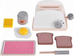 Drewniany zestaw z tosterem oferuje realistyczną zabawę, w której dzieci mogą symulować przygotowanie śniadania jak dorośli. Każde dziecko doceni staranne wykonanie i naturalne materiały bezpieczne w użytkowaniu. Zestaw zapewnia: