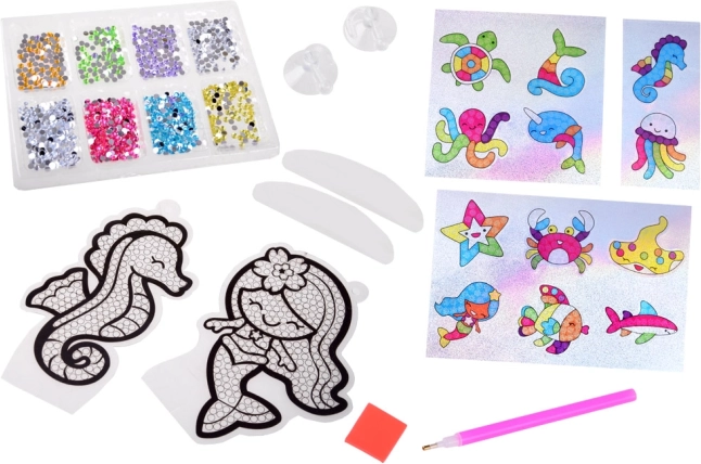 Stwórz błyszczące naklejki i dwa wiszące obrazki z morskimi przyjaciółmi. Gotowe prace łatwo postawisz na podstawkach lub zawiesisz przyssawkami z haczykami.