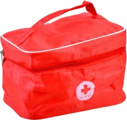 Wszystkie akcesoria schowasz do czerwonej torby z krzyżem. Idealna do przenoszenia i szybkiej pomocy w każdym miejscu.