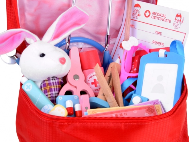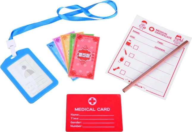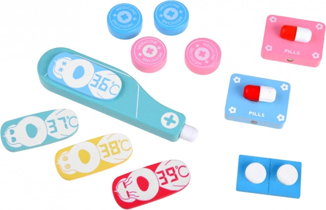 Strzykawka, nożyczki, pęseta czy termometr wykonane są z wytrzymałego drewna o przyjemnej powierzchni. Wspierają małą motorykę i bezpieczną zabawę.