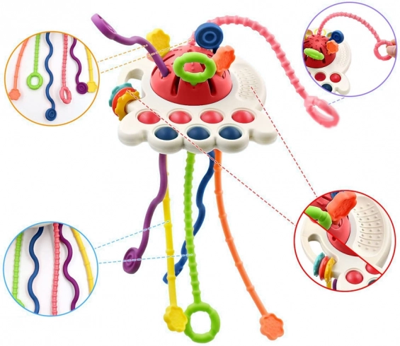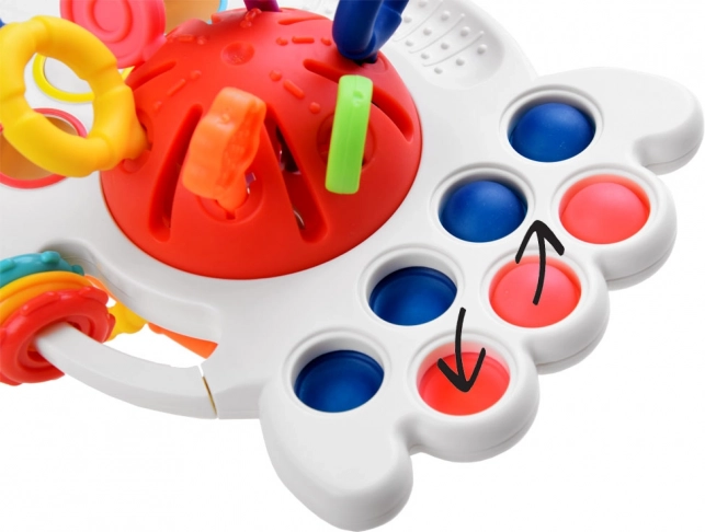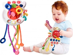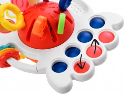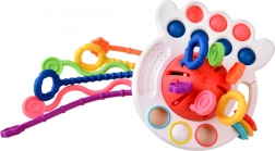 Zabawka ma miękkie przyciski sensomotoryczne, które wspierają manipulację. Dzieci mogą cieszyć się różnymi bodźcami dotykowymi dzięki trzem plastikowym pierścieniom z różną fakturą i powierzchnią z wyraźną teksturą kulek.