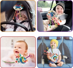 Z delikatnymi efektami dźwiękowymi i wieloma fakturami, zabawka wspiera rozwój zmysłów dziecka.