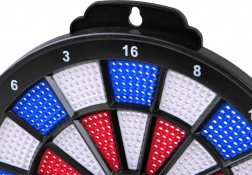 Tarcza została zaprojektowana do rekreacyjnego użytku z czerwonymi, niebieskimi i białymi segmentami dla precyzyjnego celowania i punktowania.