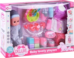 Zestaw zawiera butelkę, smoczek, pieluszkę, nocnik i wiele innych dodatków dla pełnego doświadczenia zabawy z lalką.