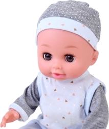 Lalka symuluje różne dźwięki takie jak mówienie, śmiech czy płacz, co dodaje autentyczności i interaktywności zabawie.
