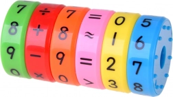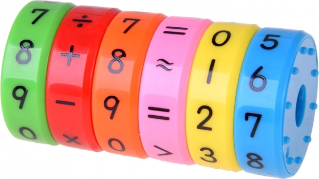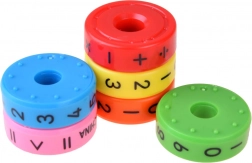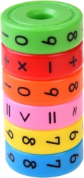 Sześć kolorowych magnetycznych pierścieni pozwala dzieciom tworzyć różne operacje matematyczne.