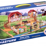 Zestaw Farma na pastwisku jest świetny dla małych farmerów, którzy chcą odkrywać życie wiejskie. Zawiera realistyczne elementy jak budynki, zwierzątka oraz matę do gry naśladującą trawę, ścieżkę i staw. Dzieci mogą tworzyć różne scenerie i cieszyć się bezpieczeństwem dzięki światełkom.