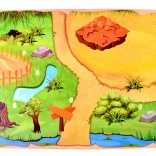 Mata do gry zawiera różne tereny jak trawa, ścieżka i staw, które wzbogacają dziecięce doświadczenia z gry.