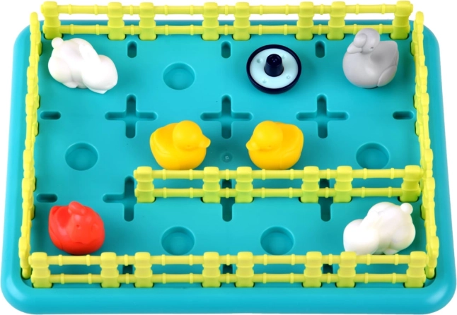 Plastikowa plansza do gry z wyraźnie kolorowymi zwierzątkami i płotkami oferuje wizualnie przyciągające doświadczenie, które stymuluje wyobraźnię i kreatywność.