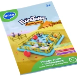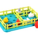Zawartość opakowania obejmuje planszę do gry, różne plastikowe płotki, figurki zwierzątek jak króliki, kaczki i gęsi oraz instrukcję obsługi. Materiały są wysokiej jakości, kolorowe i przyjemne w dotyku.