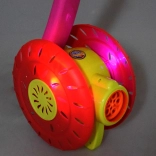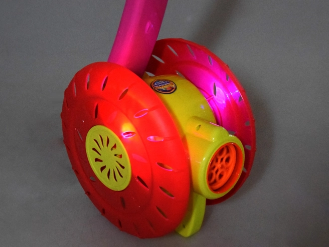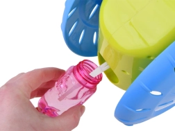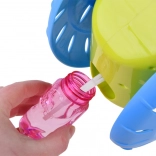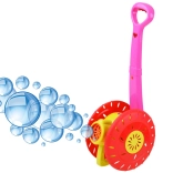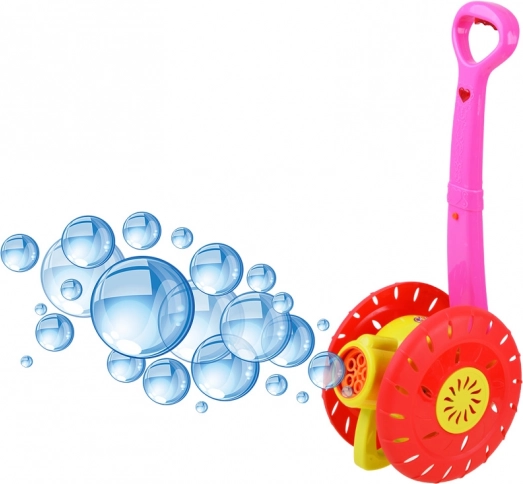 Ciesz się godzinami zabawy z tym wózkiem do pchania, który tworzy bańki podczas chodzenia. Zabawka jest zaprojektowana w taki sposób, aby rozwijać umiejętności motoryczne, wspierać chęć do spacerów i stymulować rozwój wyobraźni. Zabawka również odtwarza wesołą melodię i migają na niej kolorowe światełka.