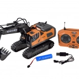 Ergonomiczny kontroler 2,4 GHz gwarantuje stabilny zasięg bez zakłóceń i umożliwia jazdę do przodu/tyłu, skręcanie w prawo/lewo, obrót w miejscu oraz pełne sterowanie ramieniem i łyżką. Dostępny jest także tryb demo. Koparka ma otwieraną pokrywę silnika i solidne wykonanie dla długiej żywotności.
