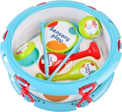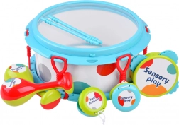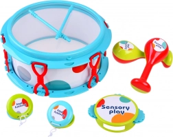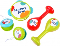 Różne instrumenty perkusyjne rozwijają percepcję słuchową, poczucie rytmu i małą motorykę. Żywe kolory motywują dzieci do aktywnego odkrywania dźwięków.