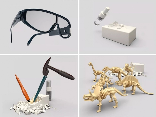 Odkryj świat prehistorii z tą zabawowo-edukacyjną serią dla małych archeologów. Dzieci za pomocą młoteczka, dłuta, pędzelka i spryskiwacza delikatnie wydobędą z gipsowych bloków szkielety 6 różnych dinozaurów i złożą je w modele. Zestaw wspiera motorykę małą, myślenie logiczne i ciekawość, a dzięki okularom ochronnym oferuje bezpieczne i realistyczne doświadczenie paleontologiczne.