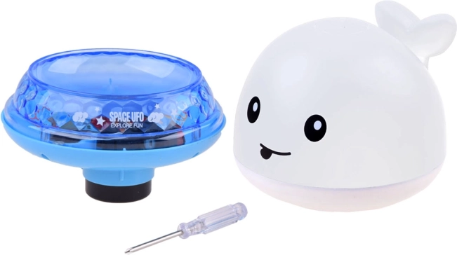 Po zanurzeniu wieloryb uruchamia się sam, rozpryskuje wodę i mieni się kolorowymi światłami – doskonałe urozmaicenie wieczornej kąpieli.