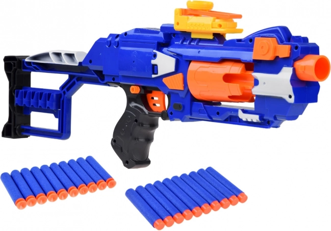 Ciesz się dynamiczną zabawą akcji z lekkim i wytrzymałym blasterem na piankowe strzałki. Automatyczny mechanizm pomaga szybko wyrzucać strzałki za pomocą przepływu powietrza – wystarczy przełączyć na ON i naciskać spust. Dzięki ergonomicznemu uchwytowi i stabilnej kolbie dzieciom łatwo się celuje, a broń wygodnie leży w dłoni.
