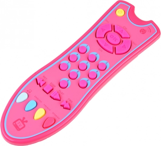 Ten dziecięcy pilot to świetna alternatywa dla prawdziwych urządzeń domowych. Dzięki ergonomicznemu kształtowi i kolorowym przyciskom rozwija małą motorykę, słuch i wzrok, a jednocześnie uczy pierwszych liczb po angielsku, francusku i hiszpańsku.