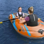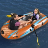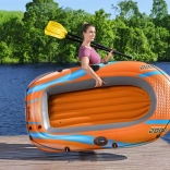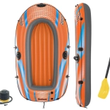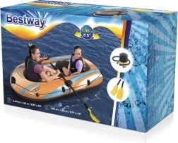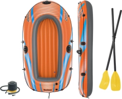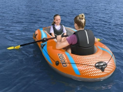 W opakowaniu znajdują się wszystkie niezbędne akcesoria do natychmiastowego użycia – para wioseł, pompka nożna i łatka naprawcza. Łódź wykonano z wytrzymałego materiału PVC, przetestowanego pod kątem warunków wodnych.