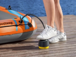 W zestawie znajdują się wiosła, pompka nożna oraz łatka naprawcza do natychmiastowego użycia.