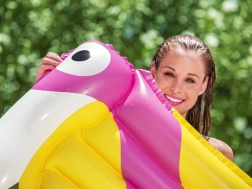 W zestawie znajduje się zintegrowana dmuchana poduszka, która podpiera głowę i kark dla pełnego relaksu. Barwna letnia grafika z motywem ptaka doda Twojej wodnej zabawie stylu i dobrego nastroju. Lekka konstrukcja umożliwia szybkie pompowanie, spuszczanie powietrza oraz łatwe przenoszenie i przechowywanie.