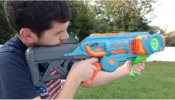 Blaster jest wyposażony w podwójny obrotowy magazynek, który pomieści łącznie 32 piankowe pociski do długich godzin zabawy.