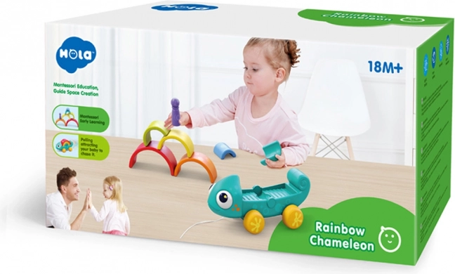 Kameleon wspiera zabawę przez ciągnięcie i układanie, gdzie każdy element interakcji wzmacnia umiejętności dziecka.