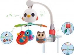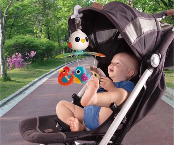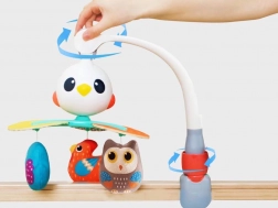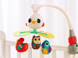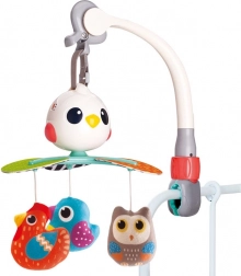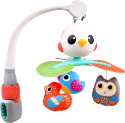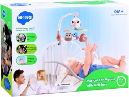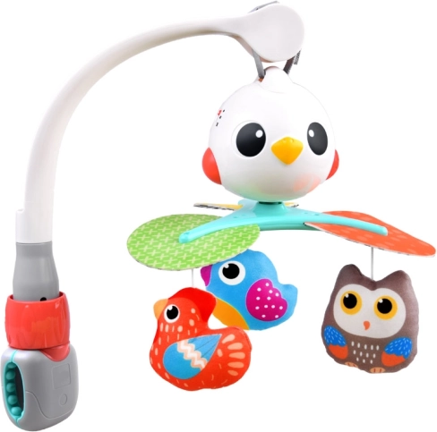 Ta piękna karuzela dziecięca została zaprojektowana tak, aby stymulować wzrok, słuch i dotyk Twojego dziecka. Sprawdzone piosenki i przyjemne melodie sprawią, że maluszek będzie zadowolony i wyciszony. Obracająca się konstrukcja uzupełniona jest zawieszanymi zabawkami w kształcie kolorowych ptaszków, zachęcającymi do chwytania i dotykania.