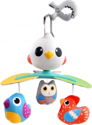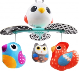 Zawieszane zabawki w kształcie ptaszków przyciągają uwagę i zachęcają dziecko do wyciągania rączek oraz zabawy.