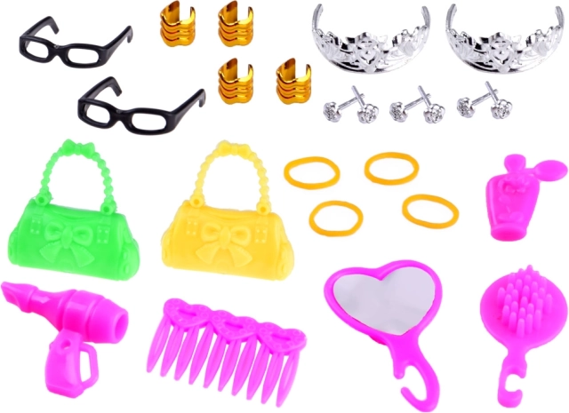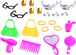 Ten uniwersalny zestaw ubranek i dodatków jest przeznaczony dla lalek typu BARBIE, ANLILY oraz innych lalek o wysokości ok. 30 cm. Dzięki barwnym wzorom sukienek, bogatej kolekcji obuwia i stylowym akcesoriom dzieci łatwo tworzą nowe stylizacje i rozwijają wyobraźnię oraz małą motorykę.