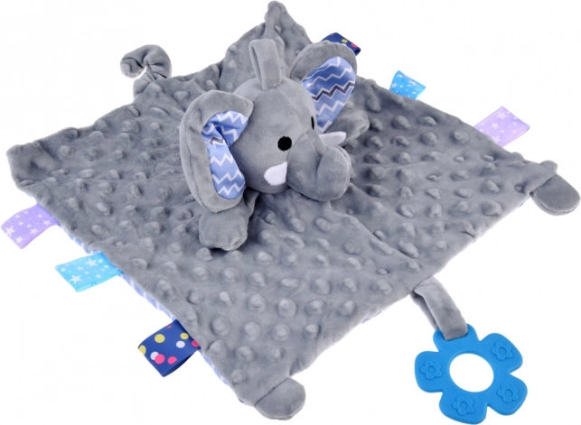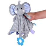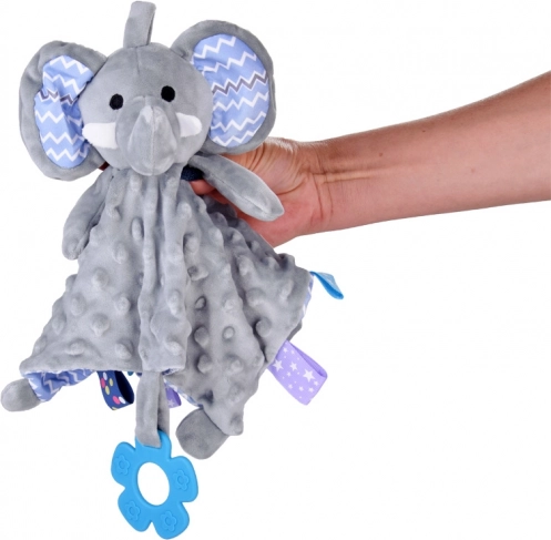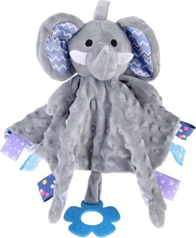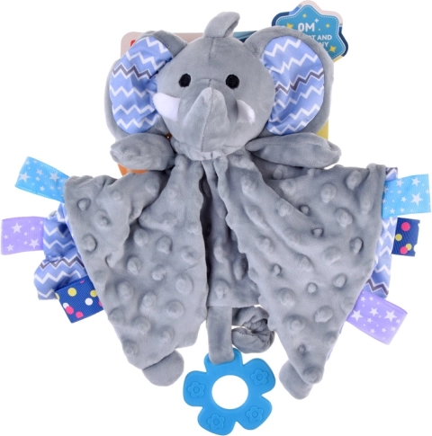 Urocza pluszowa przytulanka w kształcie słonika otuli maluszka miękkością, a silikonowy gryzak przyniesie ulgę przy ząbkowaniu. Różnorodne faktury i metki zachęcają do dotykania i odkrywania. Lekka, bezpieczna i idealna do łóżeczka, wózka oraz fotelika.