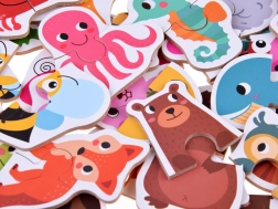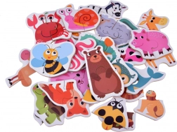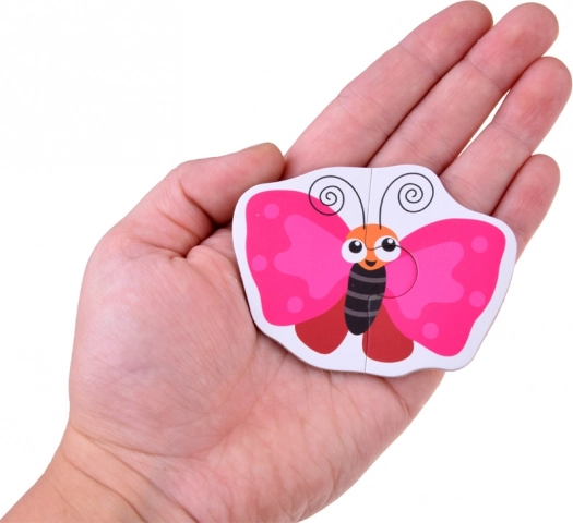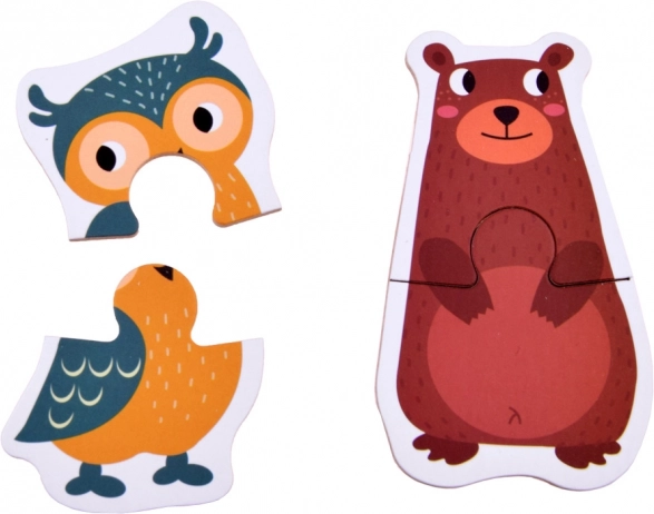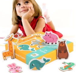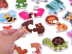 Ten barwny zestaw zawiera urocze ilustracje zwierzątek z safari, lasu, podwórka, łąki i wody. Każdy motyw składa się z dwóch większych elementów, które dzieci łatwo trzymają i łączą. Dzięki prostemu pomysłowi dzieci szybko zyskują pewność i radość z sukcesu.