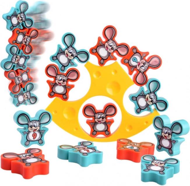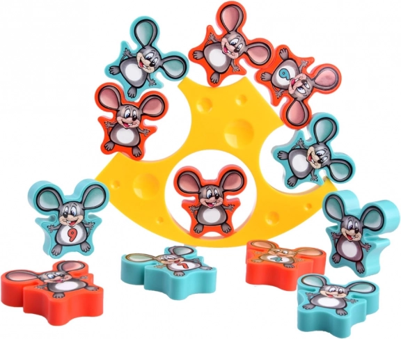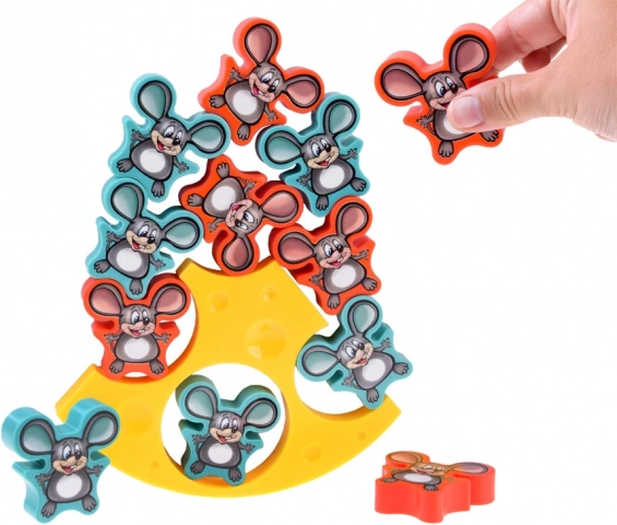 Układaj myszki na serowej podstawie tak, aby konstrukcja się nie przewróciła. Świetny trening koncentracji, motoryki małej i cierpliwości.