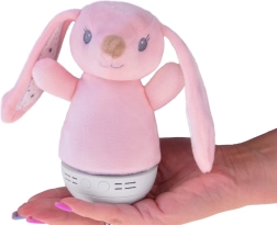 Ten delikatny różowy króliczek łączy miękki plusz z praktycznymi funkcjami lampki nocnej i kojącej muzyki. Zmieniające się kolory światła subtelnie rozświetlają pokój i wprowadzają przyjemną, bezpieczną atmosferę przed snem. Zintegrowana pozytywka z melodiami pomaga dzieciom łatwiej zasnąć i wyciszyć się.