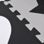 Każdy element ma precyzyjne zamki, część elementów ma zaokrąglone krawędzie, a niektóre zawierają wyjmowane środkowe kształty do nauki i zabawy. Matę łatwo powiększysz lub zmniejszysz w zależności od przestrzeni i szybko wyczyścisz wilgotną ściereczką.