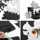 Puzzle szybko się składa i rozkłada. Dwustronna, teksturowana powierzchnia zapewnia lepszą przyczepność i stabilność podczas zabawy.