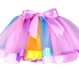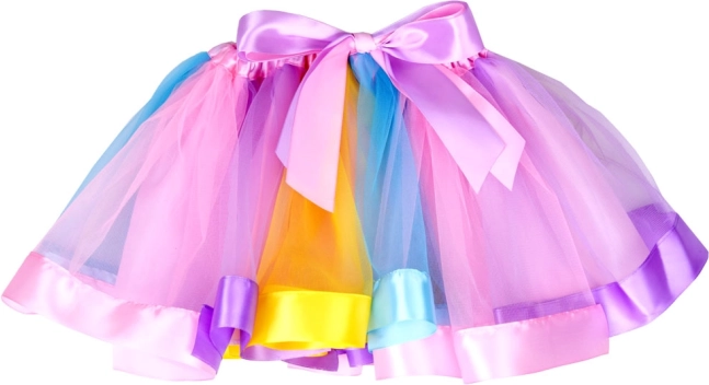 Marzysz o idealnej spódniczce dla małych tancerek? Nasza kolorowa spódniczka tutu z tęczowym gradientem i różową kokardą to strzał w dziesiątkę.