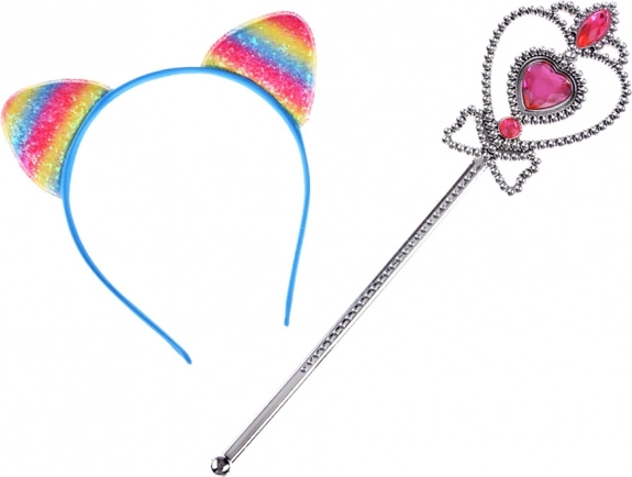 - Dodatek na głowę: Opaska z tęczowymi, błyszczącymi uszkami, które spodobają się każdej dziewczynce.