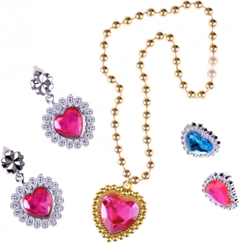 Złoty naszyjnik z różowym serduszkiem, dopasowane kolczyki i pierścionki dodadzą każdej małej wróżce uroku. Idealne na każdą okazję.