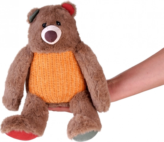 Uroczy pluszowy miś Teodor to doskonały towarzysz zarówno dla małych, jak i dużych dzieci. Ten miękki brązowy miś jest idealny do przytulania i dostarcza poczucia komfortu i bezpieczeństwa. Jego wyraziste kolory - pomarańczowy sweter, zielone i czerwone uszy oraz łapki nadają zabawce wesoły wygląd.