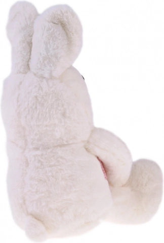 Króliczek pokryty jest delikatnym białym futerkiem, które jest nieodparcie mięciutkie w dotyku.