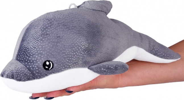 Pluszowy delfin, idealna zabawka dla dzieci, łączy miękkość i przyjemną powierzchnię dla doskonałego komfortu. Jest świetny jako zabawka i jednocześnie może służyć jako poduszeczka w podróży lub podczas odpoczynku.