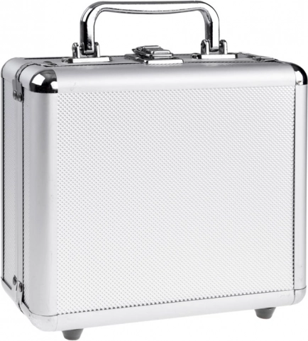 - Elegancka metalowa walizeczka z czarną, welurową wyściółką zapewnia stylowe przechowywanie.