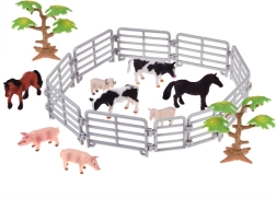 Zestaw zawiera różne zwierzęta, w tym konie, krowy, świnie i owce, oferując autentyczny wgląd w świat rolnictwa.