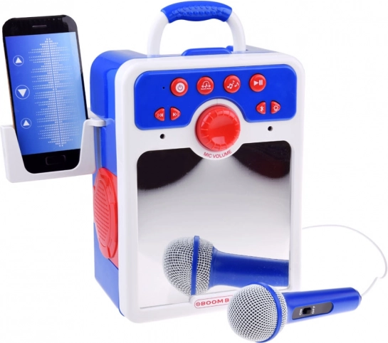 - Boombox, mikrofon z kablem, 2× uchwyt na telefon/MP3, kabel audio jack–jack, kabel zasilający USB–DC/jack