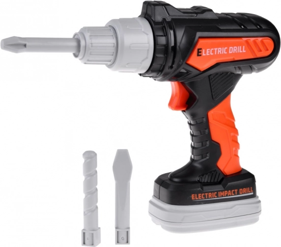 Wiertarka w zestawie obraca się w obu kierunkach, co umożliwia skuteczne wkręcanie i wykręcanie śrub, realistycznie imitując pracę prawdziwej wiertarki.
